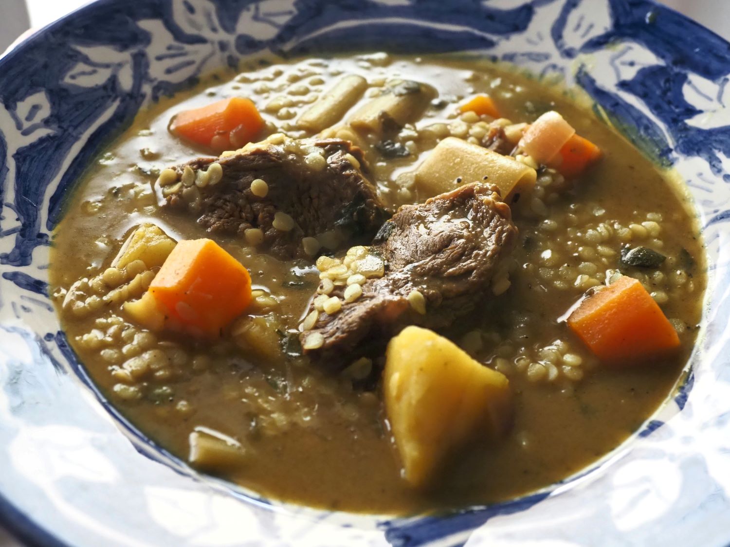 Μοσχάρι σούπα με λαχανικά και τραχανά.